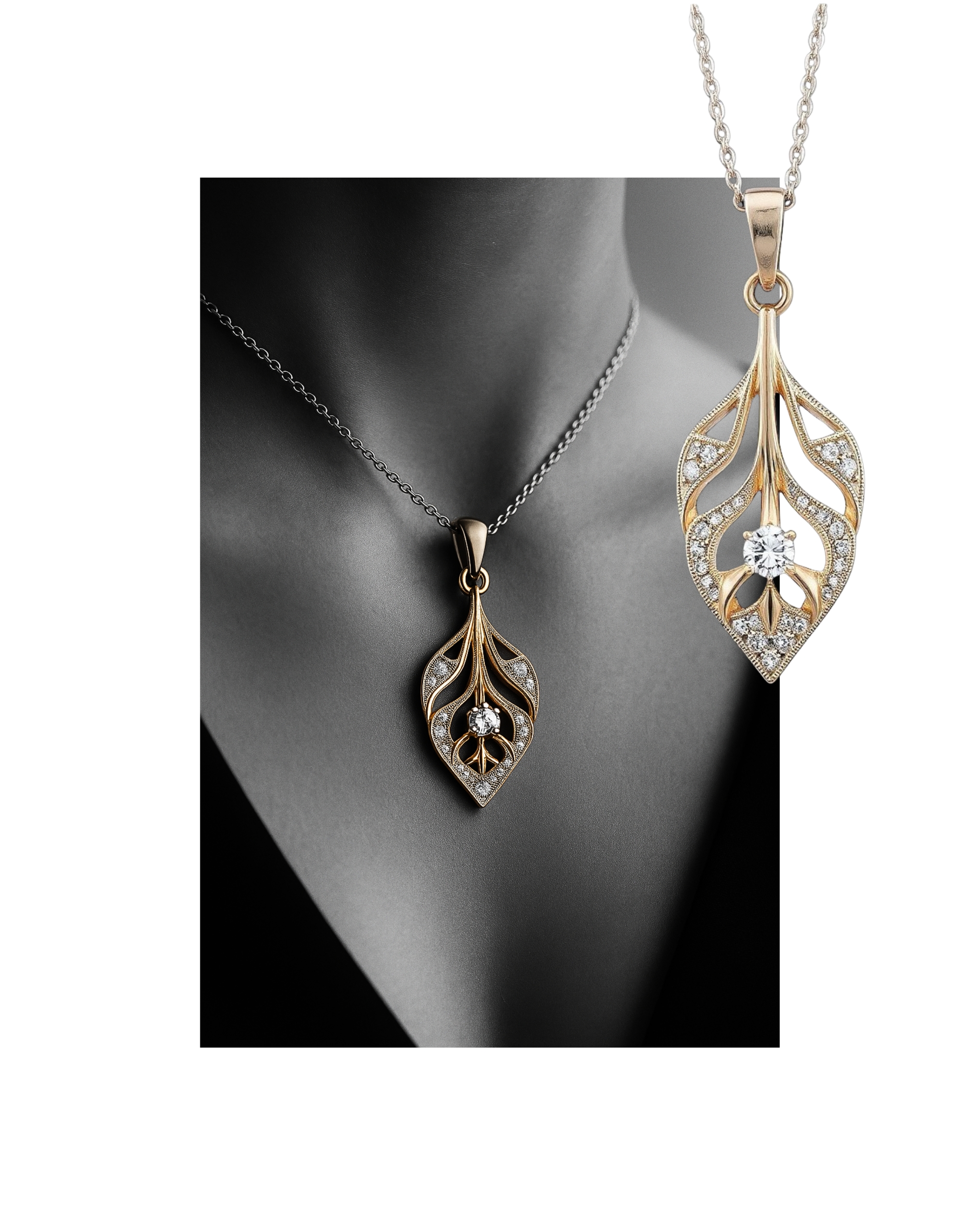 Le diamant central du collier Floréa est sélectionné pour sa qualité exceptionnelle. Son feu intérieur et son intensité lumineuse répondent aux standards de la haute joaillerie française.